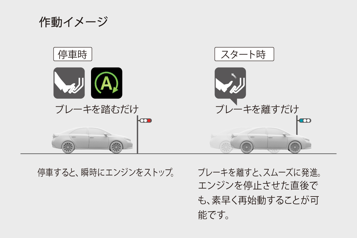 *1. シフトが「D」ポジションの状態でブレーキを踏み、車両が停止するとエンジンが自動的に停止します(エンジン停止には、いくつかの条件があります)。
