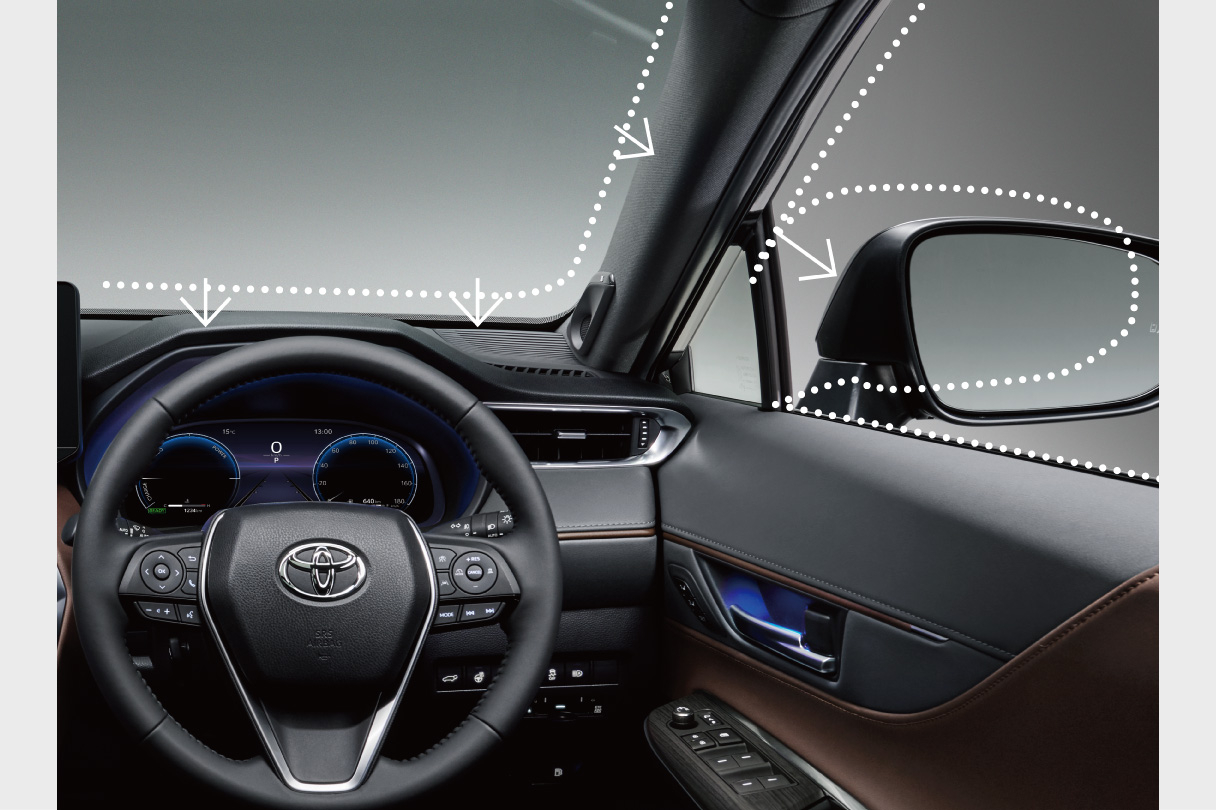 ハリアーの室内空間に合わせて、スピーカーを配置し、専用アンプにより、精緻なチューニングを施しました。前方のサウンドイメージは広いステージと奥行き感があり、左右のステレオイメージは均一で車両の幅いっぱいに広がります。煌めくような鮮やかさを実現し、コントラストが高くエネルギッシュな中高音域、インパクトかつキレのある低音域、そして低域の可聴限界に向けて伸びる豊かな重低音が特徴です。さらに圧縮された音源から欠落した音楽信号を補完し、CD相当の音源を再現するClari-FiTM(クラリファイ)の機能も備えています。
