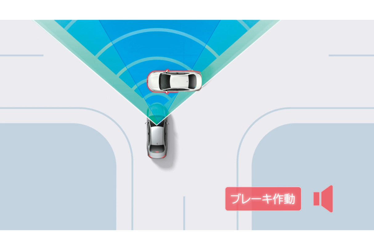 クルマに搭載したセンサーでは捉えきれない見通し外のクルマや人の存在、信号情報を、クルマとクルマ、あるいは道路*2とクルマが直接通信して取得し、マルチインフォメーションディスプレイ表示やブザー音でドライバーに知らせることで安全運転を支援します。