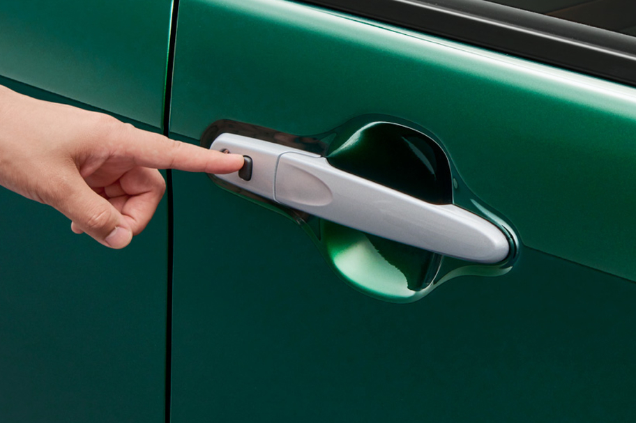電子カードキーを携帯していれば、バッグから取り出さずにドアハンドルのリクエストスイッチを押すだけでドアを施錠・解錠できます。エンジン始動もブレーキを踏みながらスイッチを押すだけで簡単に行えます。さらにIDコードが登録された正規キー以外では、エンジンが始動しない盗難防止に役立つイモビライザー機能付です。
