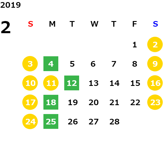 営業日カレンダー