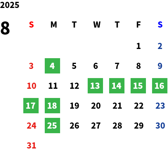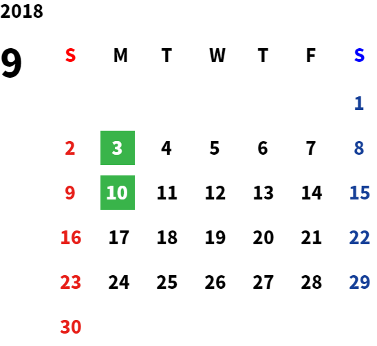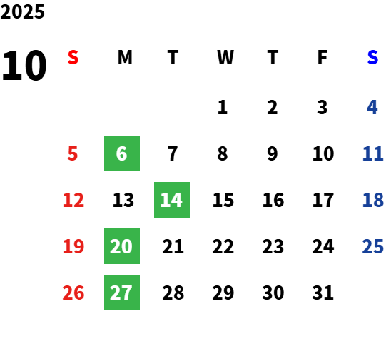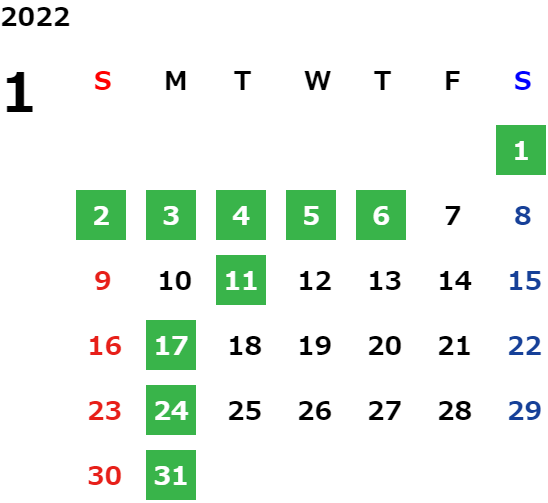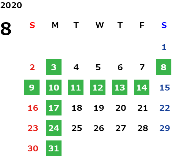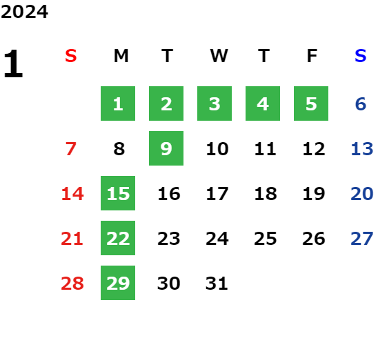 営業日カレンダー