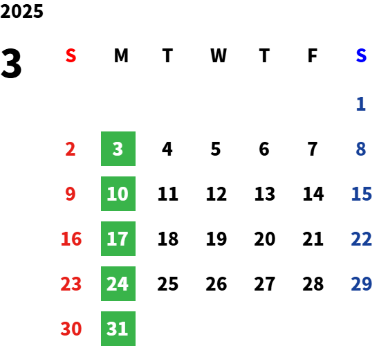 毎週月曜日